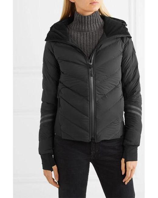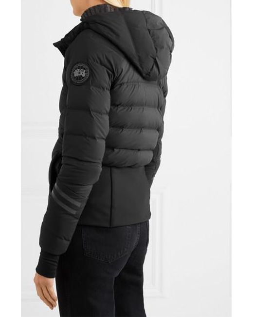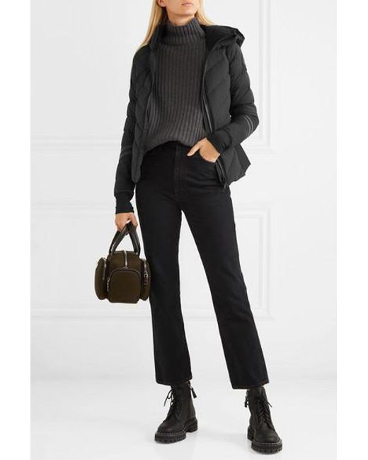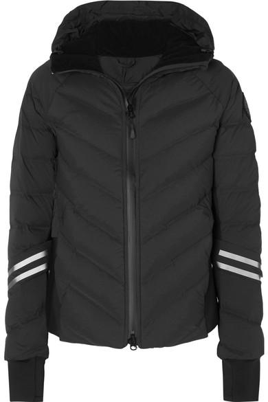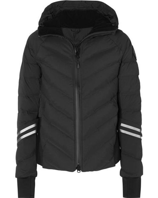 Diese Daunenjacke erinnert an einen Hoodie und ist Teil der "HyBridge" Kollektion von Canada Goose – sie macht beim Après-Ski eine ebenso gute Figur wie bei Outdoor-Aktivitäten. Das dezent lockere Modell aus leichtem Shell hat Einsätze aus "Dynamic Knit" an den Abschlüssen sowie lichtreflektierende Streifen an den Ärmeln und der Kapuze, dank denen Sie auch im Dunkeln sichtbar sind. Hier gezeigt mit: Maison Margiela Pullover, AGOLDE Jeans, Proenza Schouler Ankle Boots, Prada Tote. Shell in Navyblau und Schwarz. Durchgehender Zwei-Wege-Reißverschluss vorne. Material 1: 86 % Nylon, 14 % Spandex; Material 2: 74 % Nylon, 26% Spandex; Material 3: 94 % Polyester, 6 % Spandex; Wattierung 1: 100 % Polyester; Wattierung 2: 95 % Daunen, 5 % Federn (Gans); Futter: 87 % Nylon, 13 % Spandex. Maschinenwäsche. Hergestellt in Kanada. Farbe: schwarz