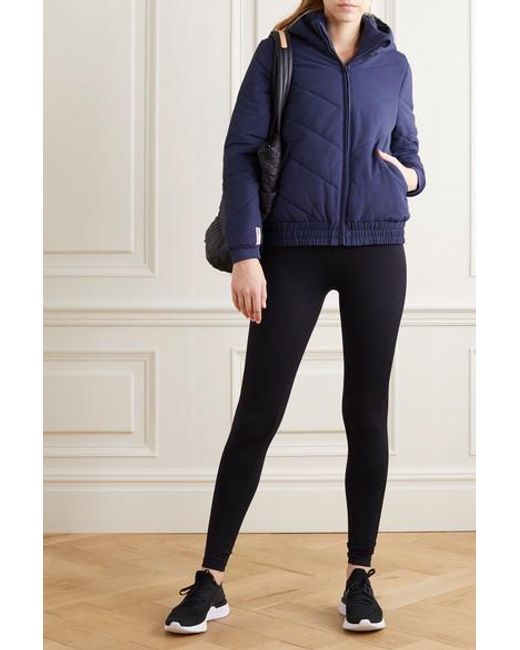 Mit dieser gesteppten Kapuzenjacke von LNDR können Sie dank des schützenden Shells und der wärmenden Wattierung kalten Tagen trotzen. Sie hat Taschen mit kuscheligem Fleecefutter und hinten ein reflektierendes Zickzackmuster, mit dem Sie auch bei geringem Licht sichtbar sind. Hier gezeigt mit: LNDR Leggings, Nike Sneakers, MZ Wallace Tote. Shell in Navyblau, Hellblau und Rosa. Durchgehender Reißverschluss vorne. 100 % Polyester. Maschinenwäsche. Farbe: blau