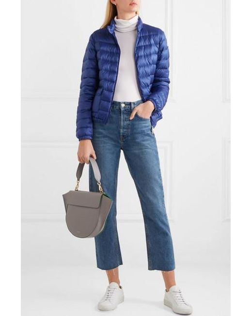 Zahlreiche Prominente wie Rita Ora und Naomi Campbell entschieden sich bereits für die gesteppten Daunenjacken von Moncler – sie sind eine perfekte Wahl, wenn Sie auch an kalten Tagen schick aussehen möchten. Diese blaue Variante hat vorne einen durchgehenden Zwei-Wege-Reißverschluss sowie einen gerafften Saum und schließt Wärme so optimal ein. Dabei ist sie ausgesprochen leicht, lässt sich also auch ideal für den Skiurlaub einpacken. Trotz der Füllung ist das Modell nicht derart voluminös, dass sie an eisigen Tagen nicht noch einen Mantel darüber tragen könnten. Hier gezeigt mit: RE/DONE Jeans, Wandler Schultertasche, Common Projects Sneakers, Wolford Body, Monica Vinader Ohrringen. Blaues Shell. Durchgehender Zwei-Wege-Reißverschluss vorne. 100 % Polyamid; Füllung: 90 % Daunen, 10 % Federn (Gans). Handwäsche. Farbe: blau