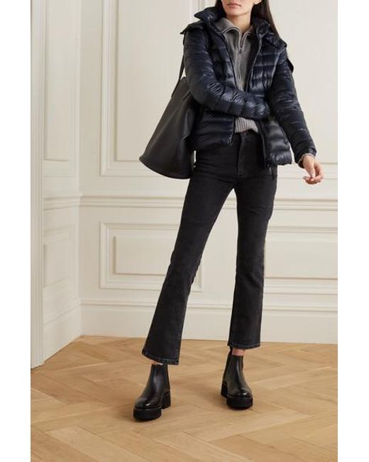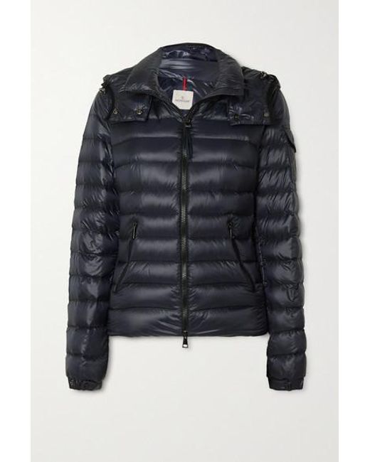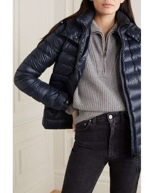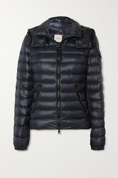 Diese Jacke von Moncler ist gesteppt und mit wärmenden Daunen gefüttert, die Sie selbst an den kältesten Tagen warm halten. Das schmale Modell wurde aus hoch glänzendem Shell gefertigt und hat eine abnehmbare Kapuze sowie den charakteristischen Logoaufnäher an der Schulter. Hier gezeigt mit: Nili Lotan Pullover, Totême Jeans, Acne Studios Gürteltasche, Grenson Ankle Boots. Navyblaues Shell. Durchgehender Zwei-Wege-Reißverschluss vorne. 100 % Nylon; Füllmaterial: 90 % Daunen, 10 % Federn (Gans). Handwäsche. Farbe: blau