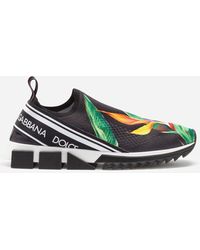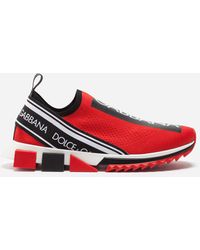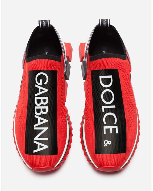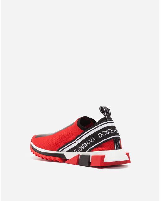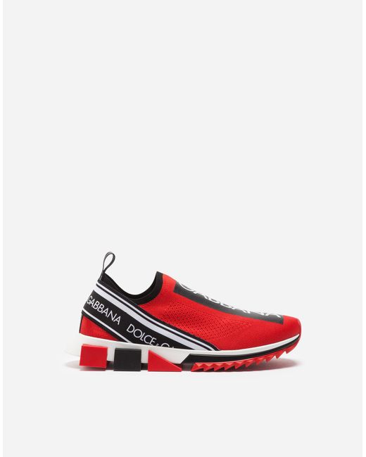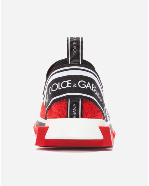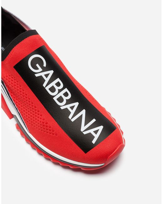 Der kultige Sorrento Slip-on-Sneaker aus Trikotmaterial mit Logotape-Print und Strumpfsilhouette umfasst alle markanten Elemente der Linie: zeitgenössischer urbaner Stil, geometrische Sohle und Dolce&Gabbana-Logo. Das Obermaterial aus Trikotmaterial wird mit einer aufwendigen Technik bedruckt, um Atmungsaktivität zu gewährleisten. Rückseitige Stretchbänder mit Logo. Fußbett aus Leder mit Logoetikett. Zweifarbige Mikrosohle. Laufsohle aus ultraleichtem Gummi. Verpackung passend zum Thema. Made in Italy. Obermaterial: 10% Elasthan 10% Nylon 65% Polyester 15% Rayon. Innenmaterial: 80% Kalbsleder 10% Baumwolle 10% Rayon. Farbe: rot