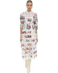Midikleid Aus Spitze Und Leinen Mit Druck - Weiß