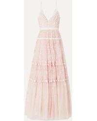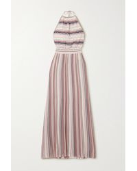 Gestreiftes Maxikleid Aus Metallic-häkelstrick Mit Neckholder - Pink