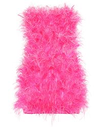 Trägerloses Minikleid Aus Baumwolle Mit Zierperlen Und Federn - Pink