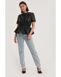 Party Shirred PU Top - Schwarz