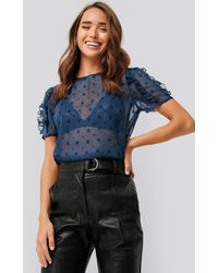 Boho Velvet Applique Shirred Blouse - Blau