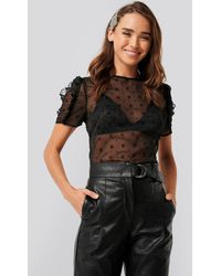 Boho Velvet Applique Shirred Blouse - Schwarz