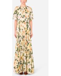 Short-Sleeved Long Chiffon Dress - Mettallic