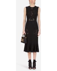 Sleeveless Cady Calf-Length Dress With Intaglio Detailing - Schwarz